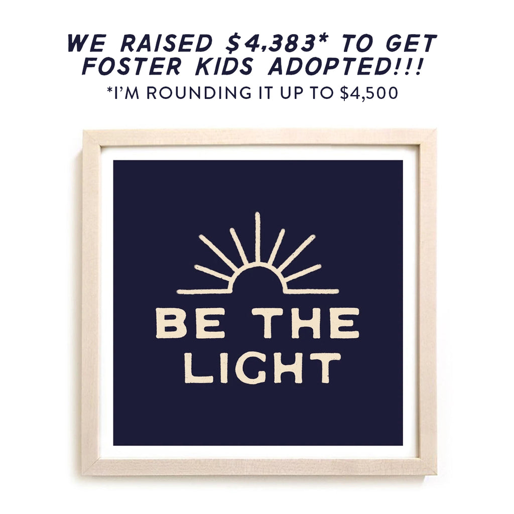Even though the December donation has already been made, sales of my Be The Light art prints are donated to Dave Thomas Foundation for Adoption year round!